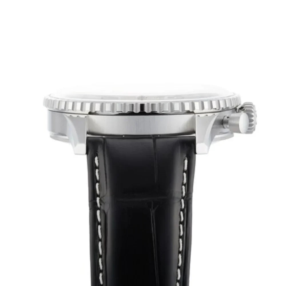 The B Navitimer B01 Chrono 46 Ref. AB0127211B1X1 is a contemporary reinterpretation of a legendary aviation icon. Crafted for modern pilots and enthusiasts alike, this 46 mm stainless steel chronograph combines technical precision, robust construction, and timeless style. Its deep black dial, accented with silver sub-dials and luminous baton markers, ensures exceptional legibility, while the classic AOPA wings at 12 o’clock honor the Navitimer’s storied aviation heritage.
