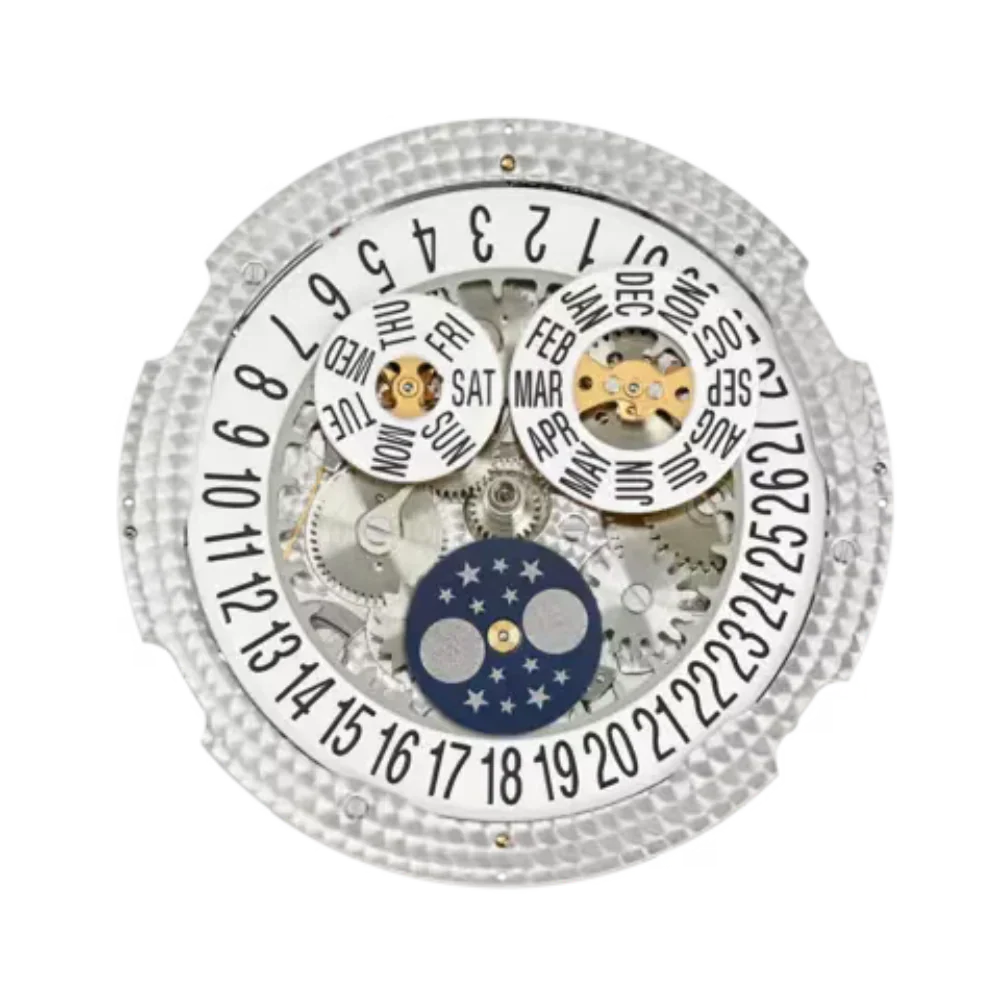 Features: Annual calendar requiring adjustment only once a year (February), moonphase accurate for over 100 years, 24-hour display